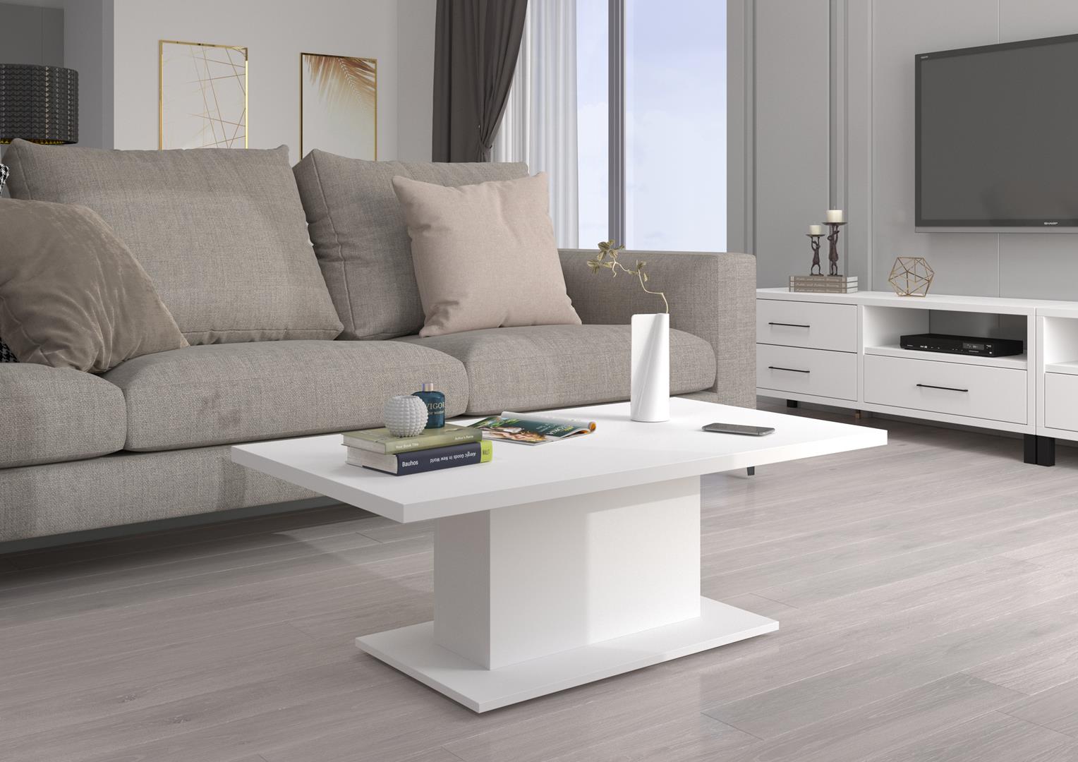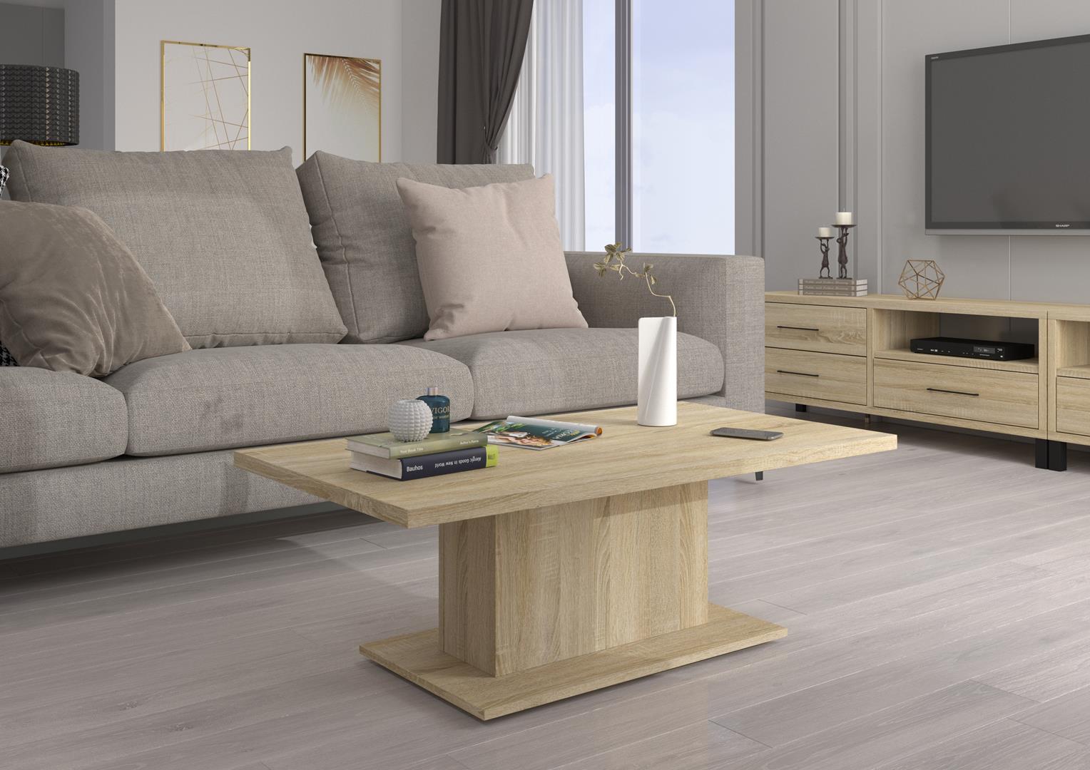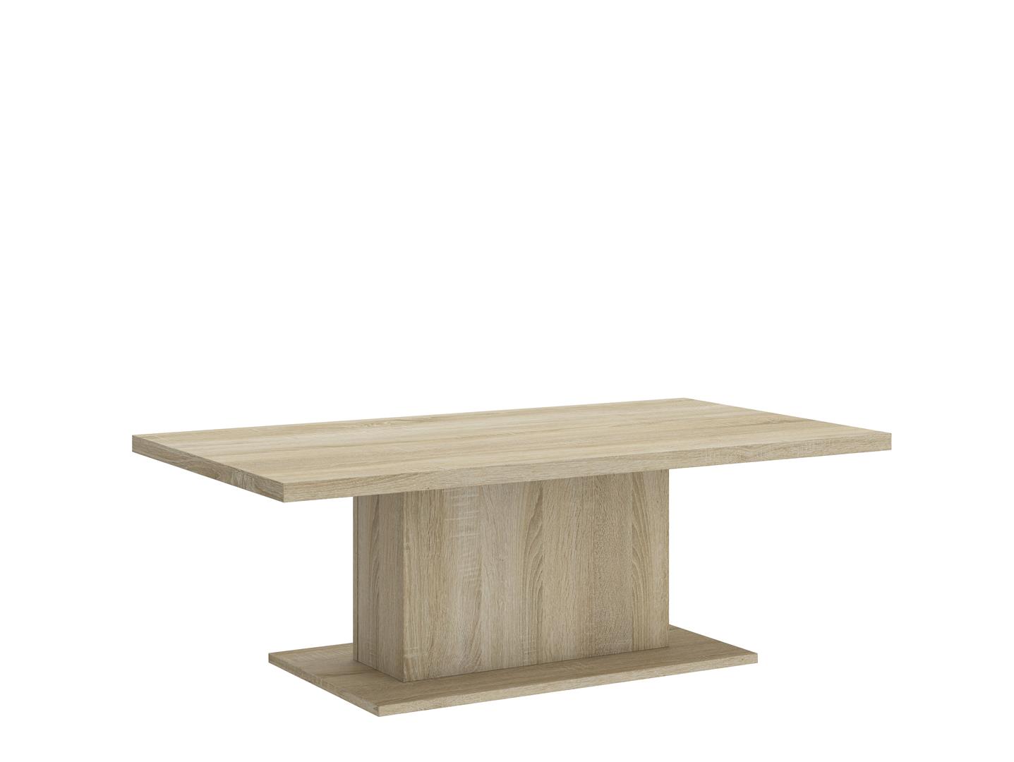 Ława charakteryzuje się nowoczesnym i uniwersalnym designem, który doskonale wpasuje się w różne aranżacje salonu. Konstrukcja mebla została wykonana z płyty dwustronnie laminowanej o grubości 16 mm, co gwarantuje trwałość i odporność na codzienne użytkowanie. Dla zwiększenia estetyki oraz ochrony krawędzi, obrzeża mebla zostały wykończone okleiną ABS. Dzięki solidnemu wykonaniu i klasycznemu wyglądowi, ława sprawdzi się zarówno w nowoczesnych, jak i tradycyjnych wnętrzach.