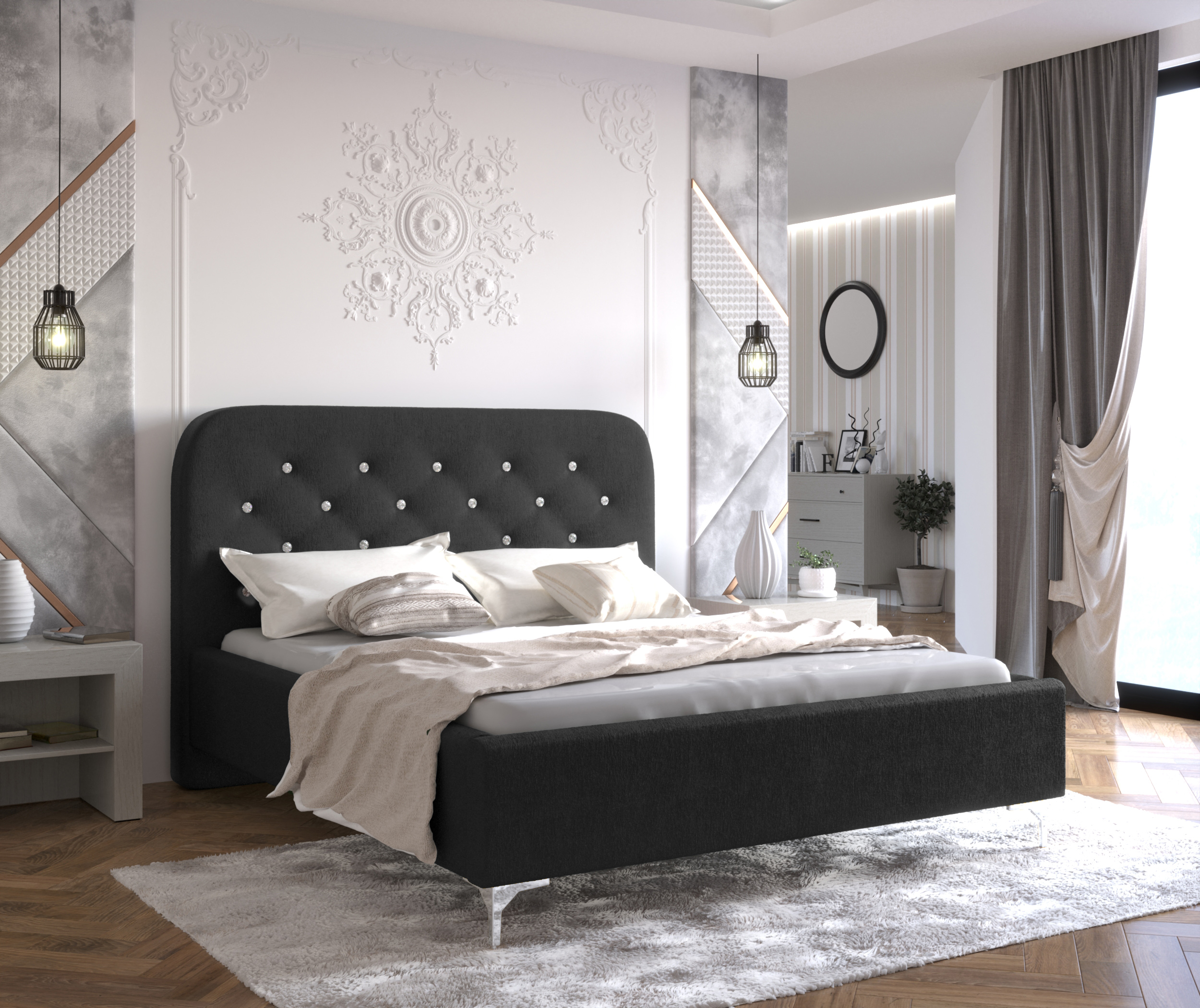 Łóżko dostępne jest w dowolnej kolorystyce – wybierz tkaninę, która najlepiej odpowiada Twoim preferencjom.