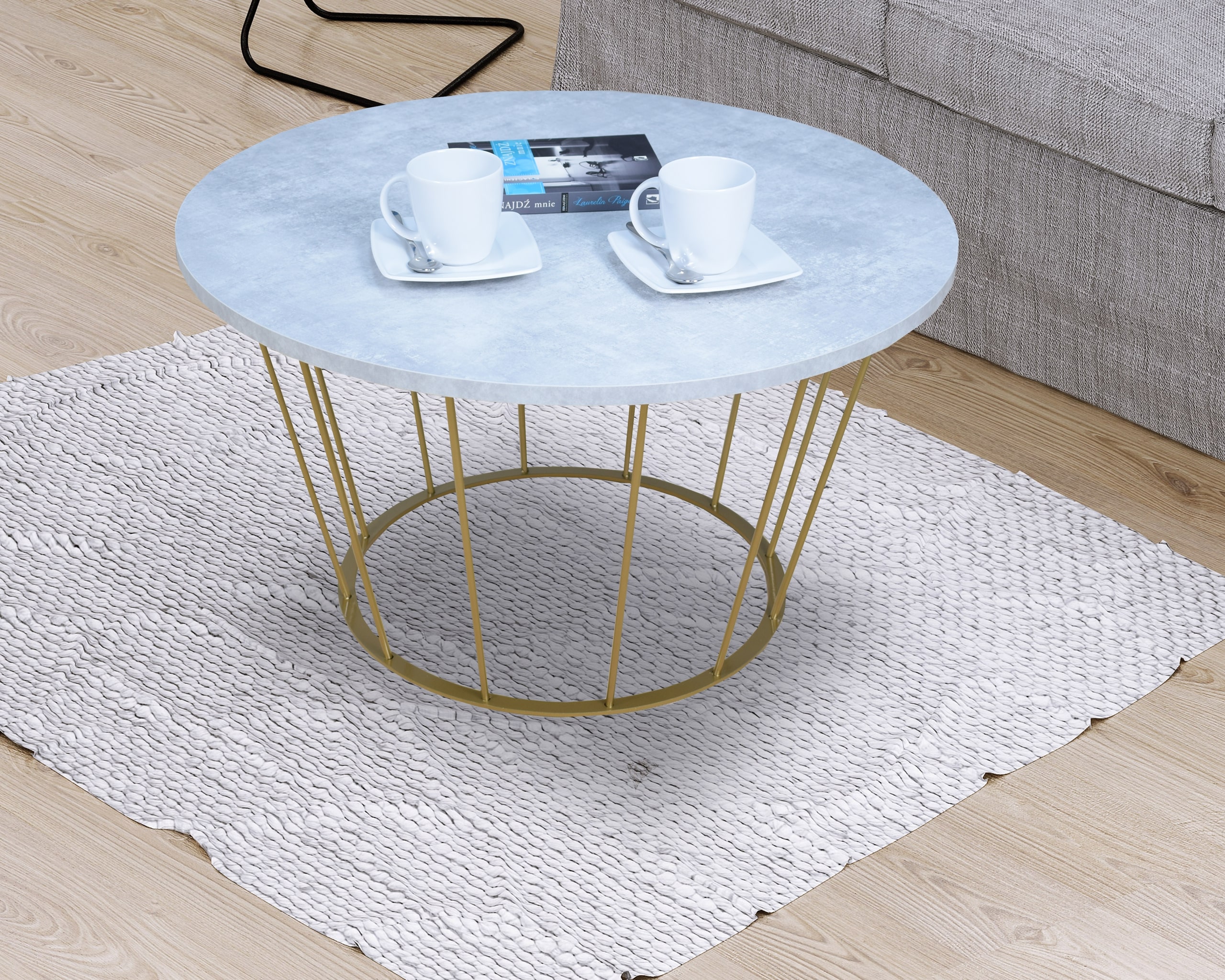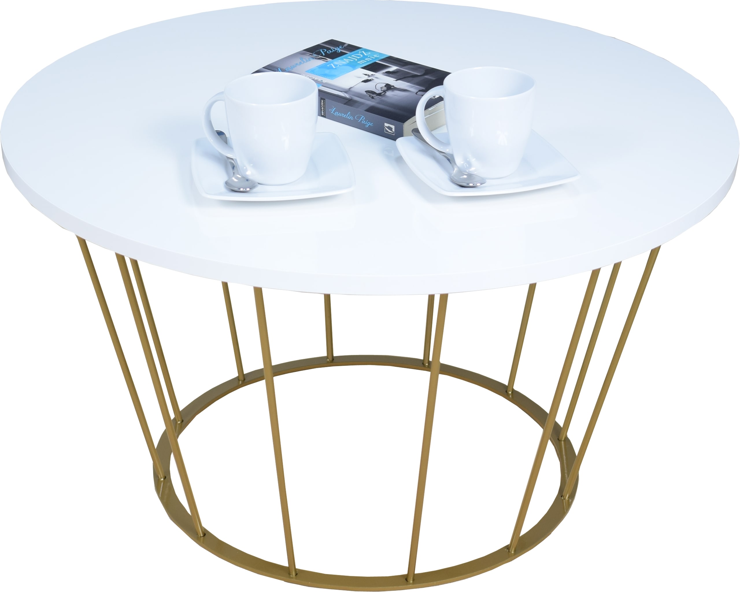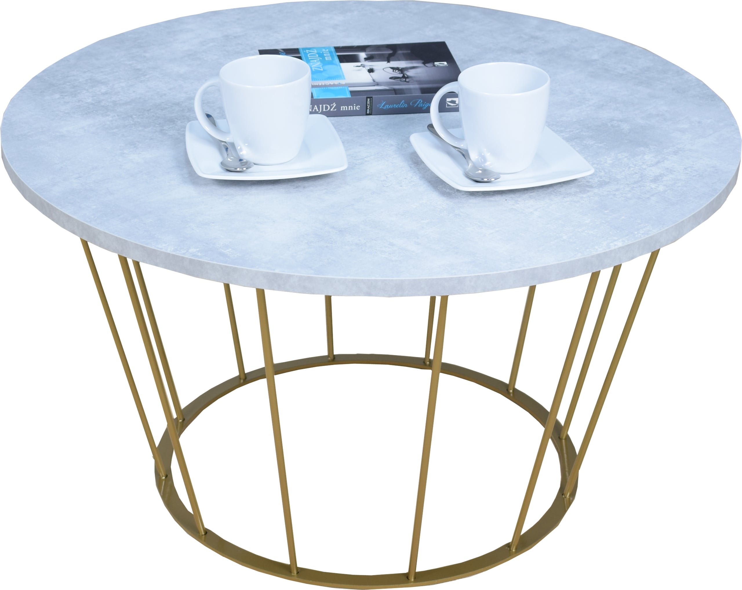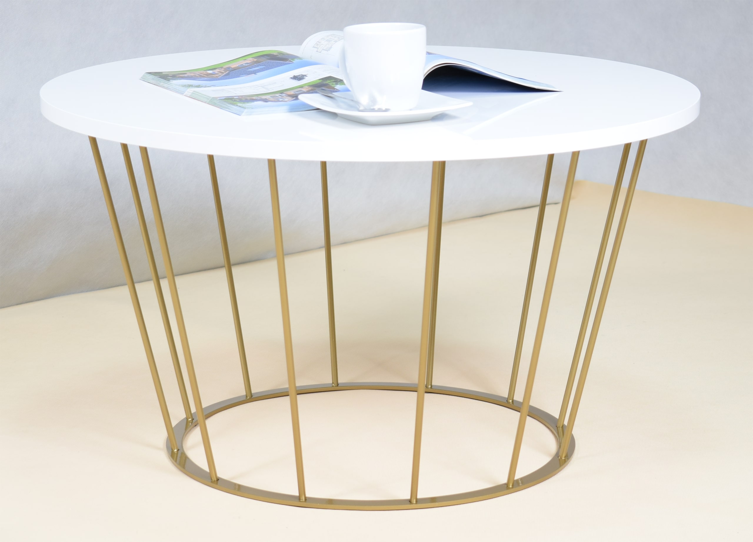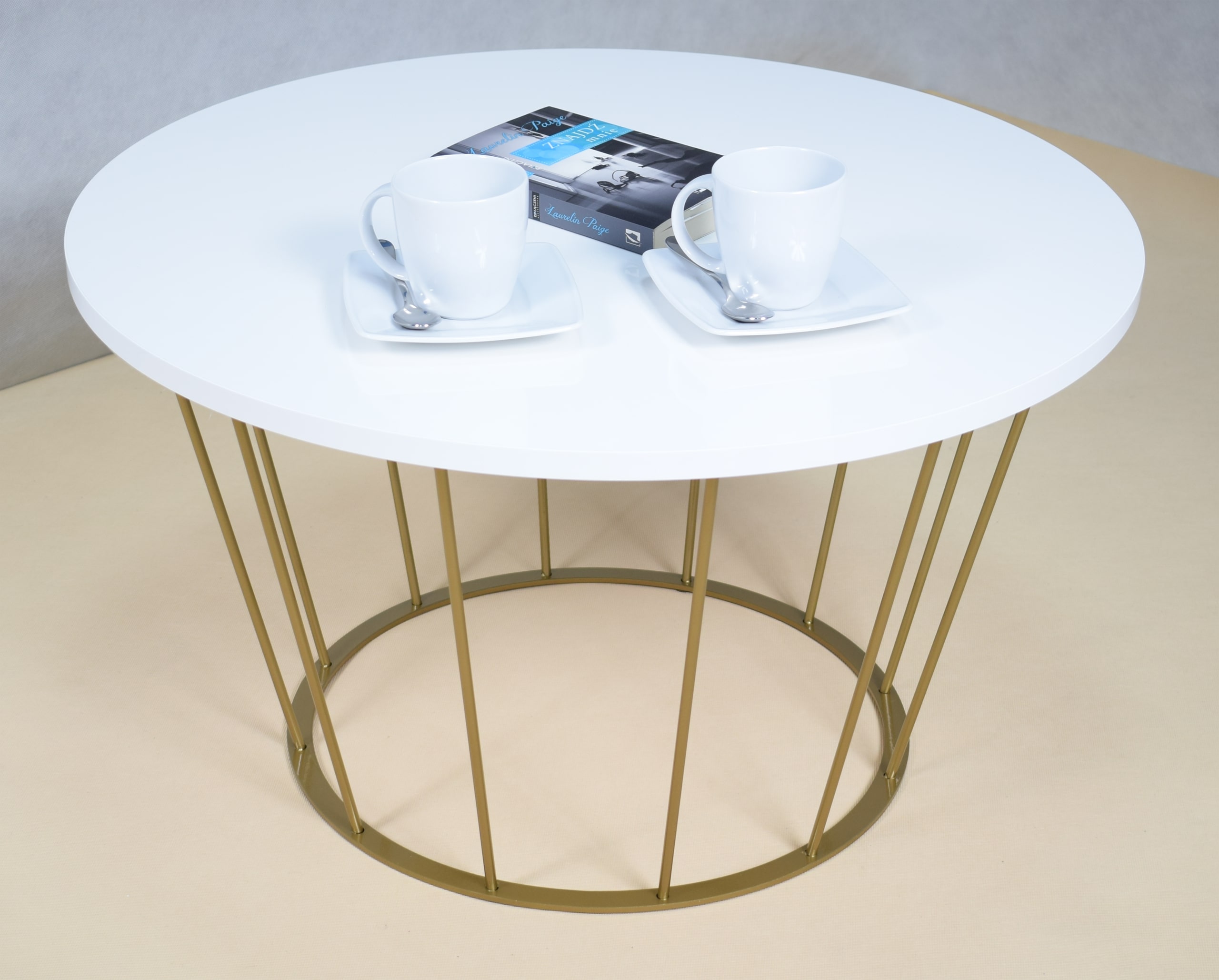 Stolik druciany z okrągłym blatem AROMATICA – ZŁOTY STELAŻ