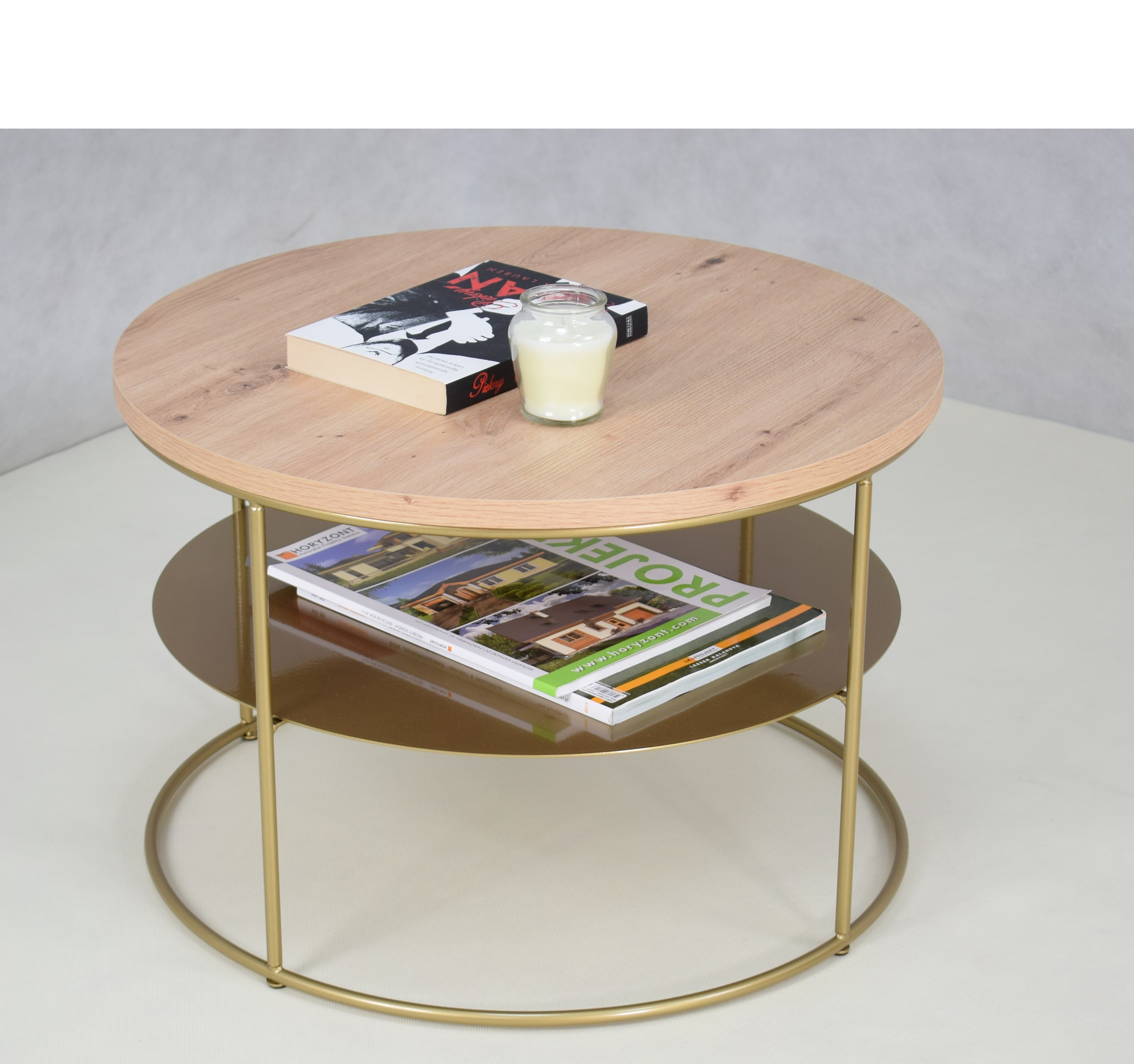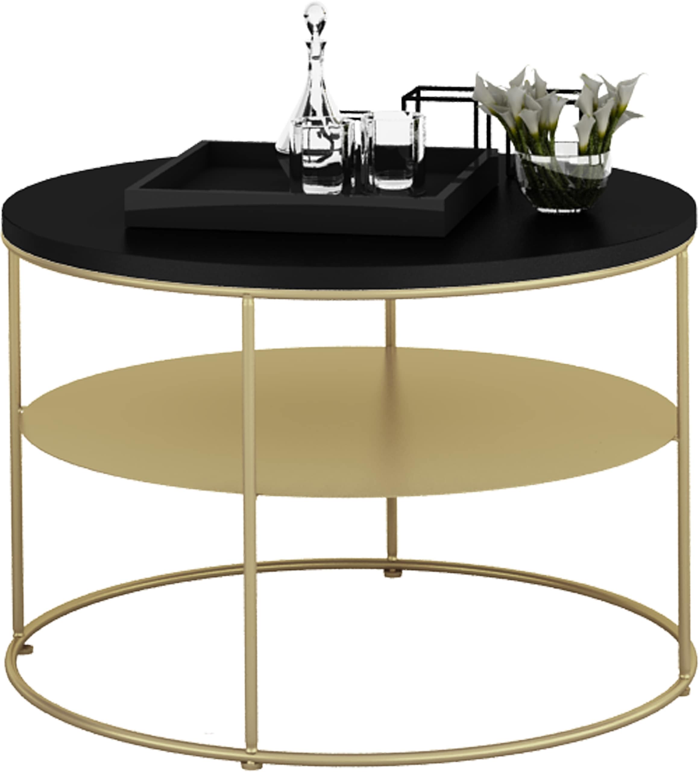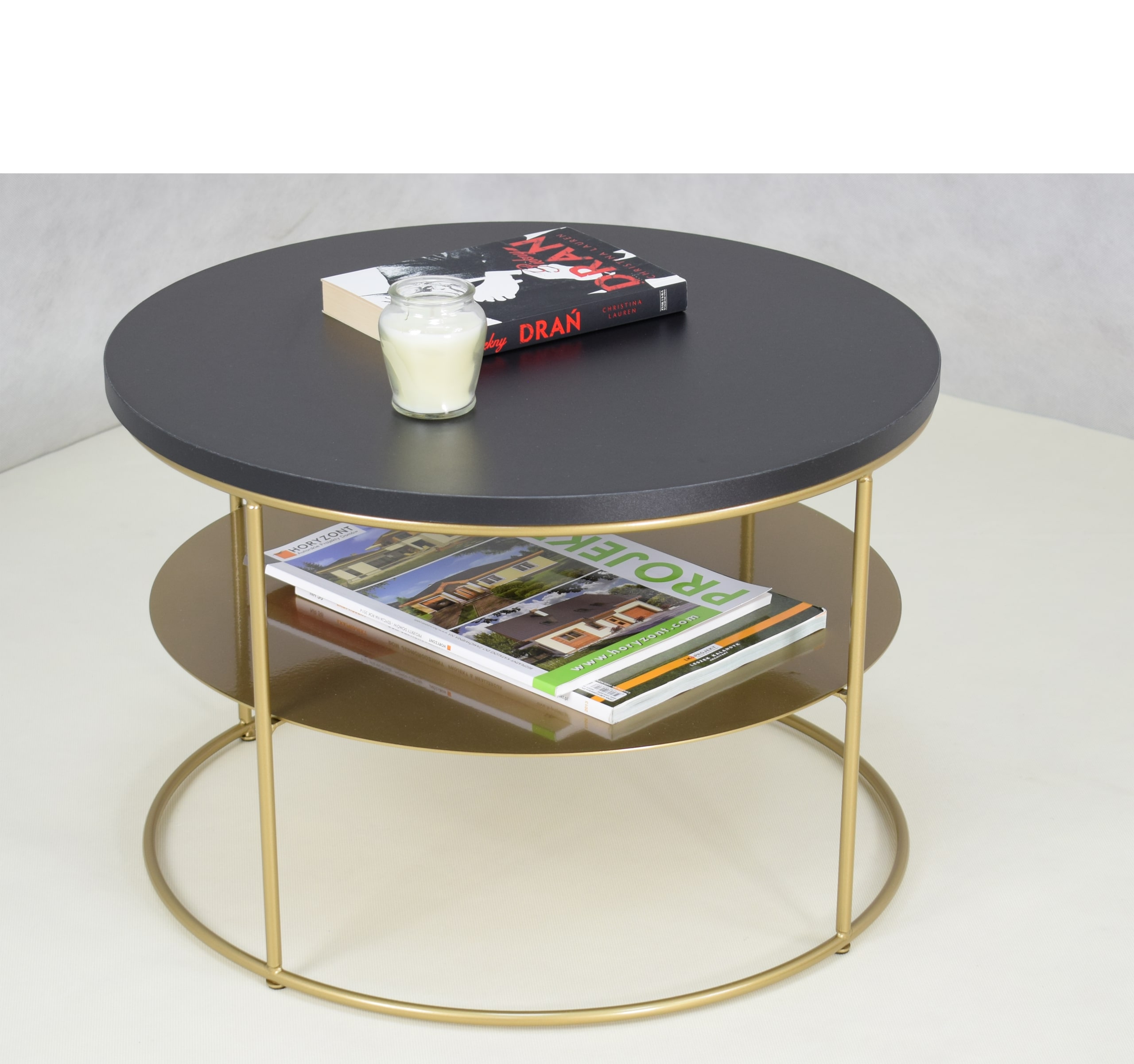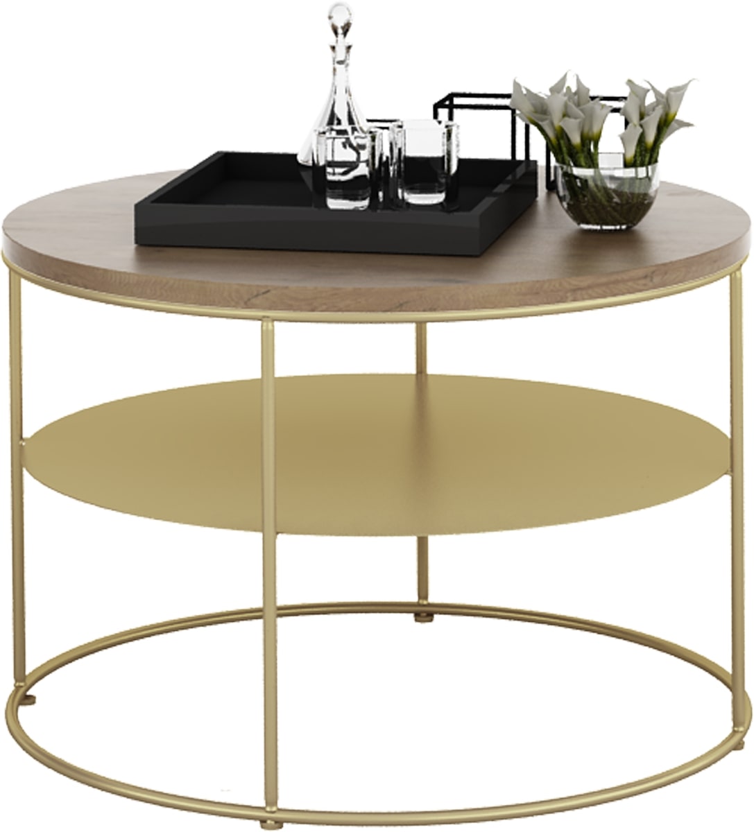 Stolik druciany z okrągłym blatem Espresso – ZŁOTY STELAŻ