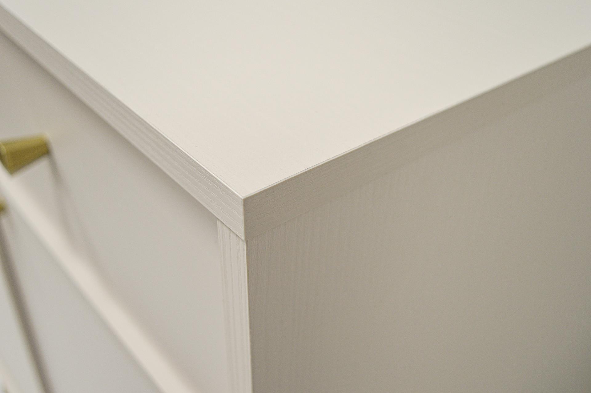 Stolik nocny to funkcjonalny mebel, który doskonale sprawdzi się w sypialni, zapewniając dodatkowe miejsce do przechowywania. Front oraz korpus wykonano z laminowanej płyty o grubości 16 mm, a ich krawędzie zabezpieczono trwałą okleiną ABS, co zwiększa odporność na uszkodzenia i gwarantuje estetyczny wygląd na lata.