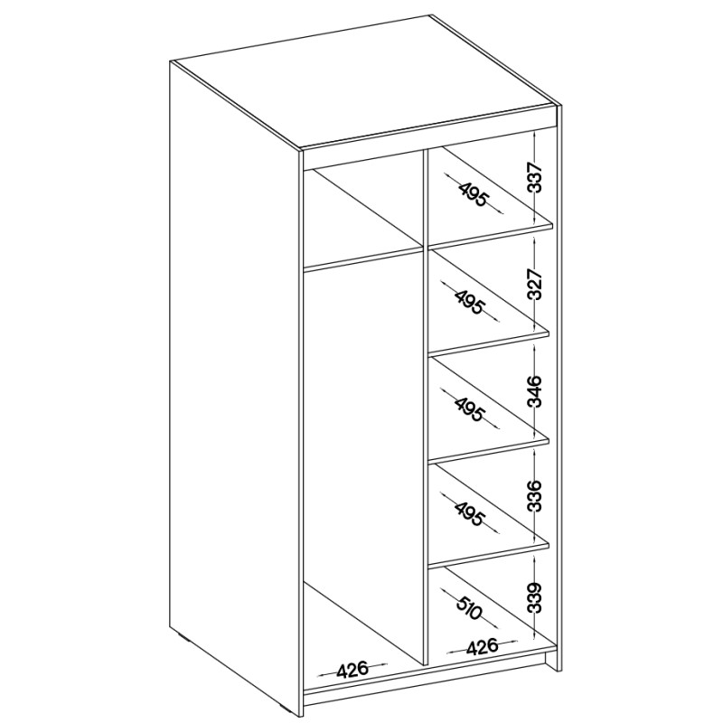 Szafa dwudrzwiowa to praktyczne i eleganckie rozwiązanie do sypialni, garderoby lub pokoju dziecięcego. Fronty i korpus wykonano z płyty laminowanej o grubości 15 mm, a krawędzie wykończono trwałą okleiną z melaminy, co zwiększa odporność mebla na uszkodzenia.